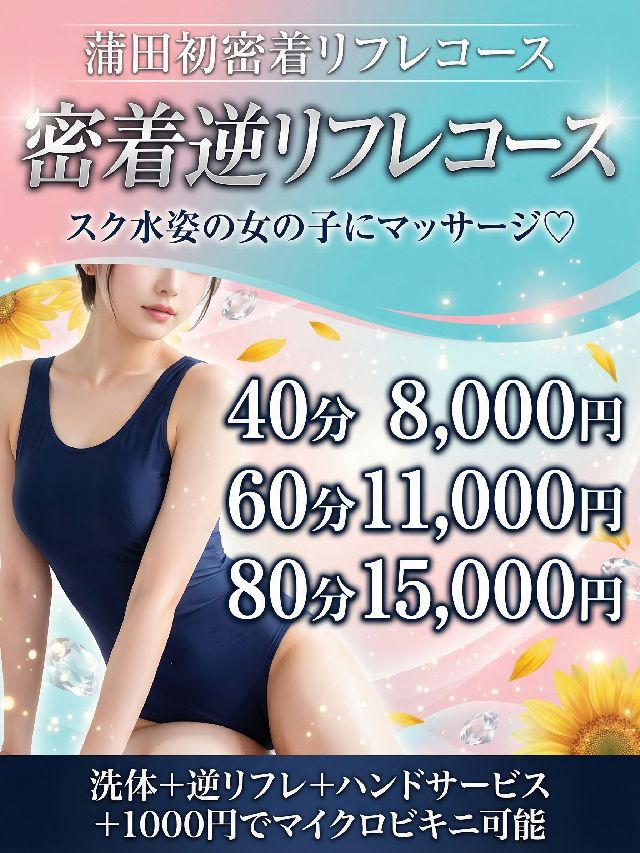 [03/24 12:00]♡スク水で密着リフレコース♡ 【逆リフレ】と【スク水】込みで夢の様なコースです☆ ☆40分8,000円 ☆60分11,000円 ☆80分15,000円 しかも『+1000円でマイクロビキニに変更』も可能です♡ スク…